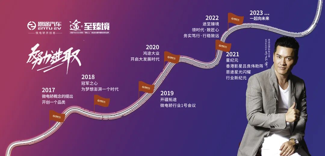作为微电轿行业的开创者和引领者,恩途近几年来始终保持着绝对的领先优势。从开创微电轿新品类,到“敢为天下先”,“澎湃一个时代”,从不畏浮云遮望眼,自缘身在最高层的“冠军之心”,到开拓“宏途大业”和“星纪元”,恩途始终以引领行业发展新方向的领军姿态,向行业展示品牌自身追求更高更新发展的新面貌。