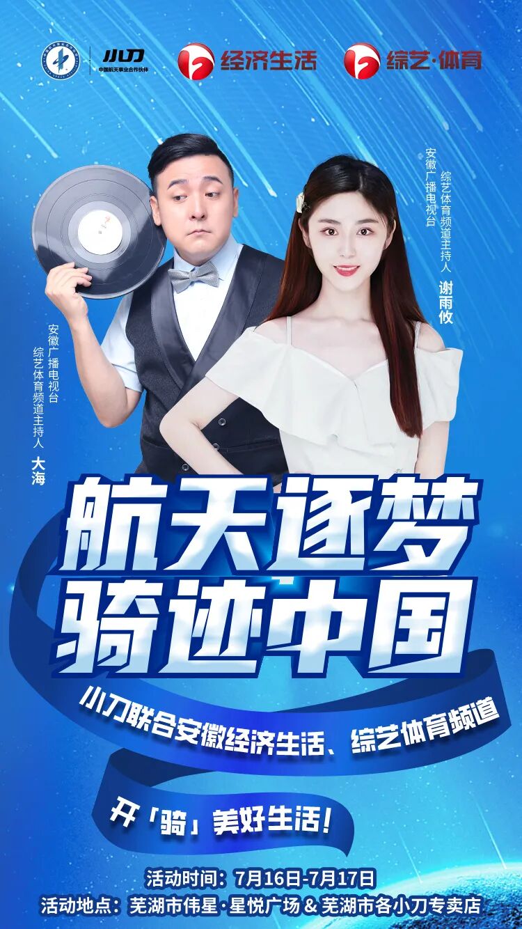 7月16日-7月17日,小刀电动车联合安徽经济生活、综艺·体育频道,山东综艺频道,联动打样,就要送爽,嗨到爆!![]()