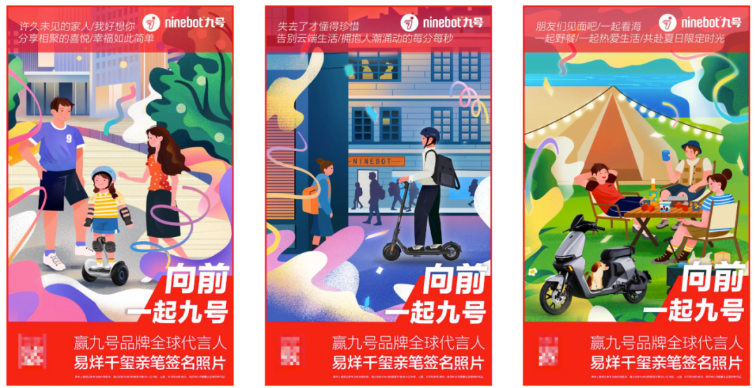 7月,对于九号而言,注定是不平凡的一个月。继7月5日官宣品牌全球代言人易烊千玺后,且大手笔投放全国多个一线城市核心商圈展开“地面攻势”,并放出大招——线上主题活动H5“向前,一起九号”在九号最新公布的主题活动H5中,广大网友可以与九号共同体验“骑妙出行”的千种可能。参与活动的粉丝还有机会赢取九号品牌全球代言人易烊干玺亲笔签名照片、九号品牌全球代言人易烊干玺印签大海报、电动滑板车、电动车半盔等好礼!满满的惊喜与乐趣受到了用户的一致好评。一场线上线下风暴在今年旺季掀起,九号为品牌造势的声音持续不断,以火力全开的攻势创造属于九号的“骑”迹。![]()