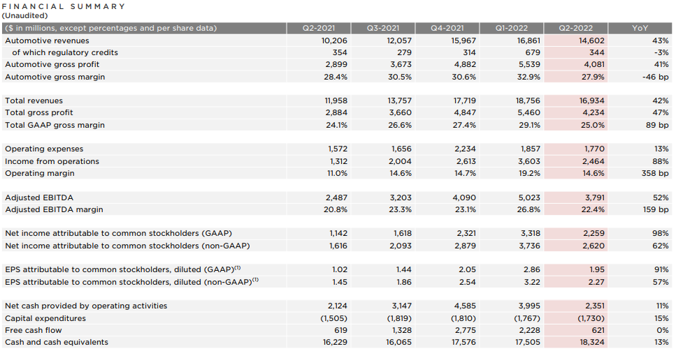 特斯拉发布2022年二季度财报