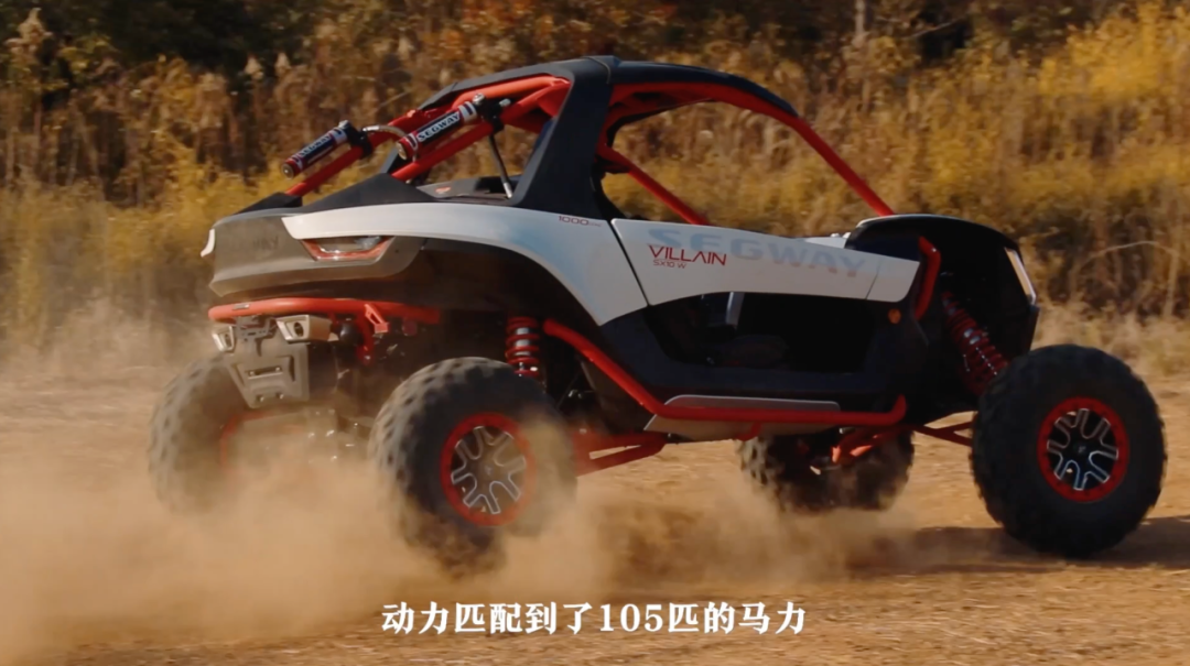 对于全地形来说,车子真的越轻越好(看配重),太重可能会影响它的加速性能。这辆SSV自重有860公斤,动力匹配到了105匹的马力,越野悬挂行程前410mm、后460mm(赛用双速可调氮气避震),开起来真得很舒服