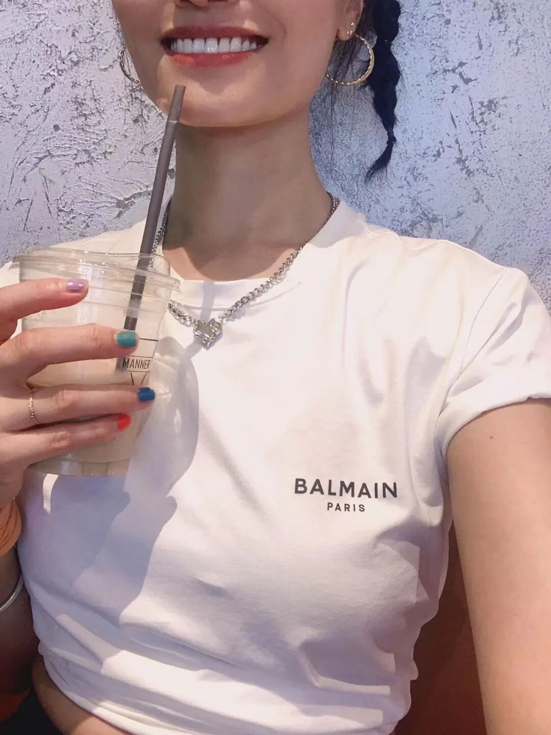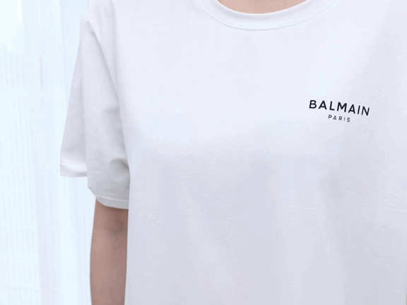 与BALMAIN 时装线不同的是,在T恤的后领处印有“HAIR COUTURE”的系列字母。
