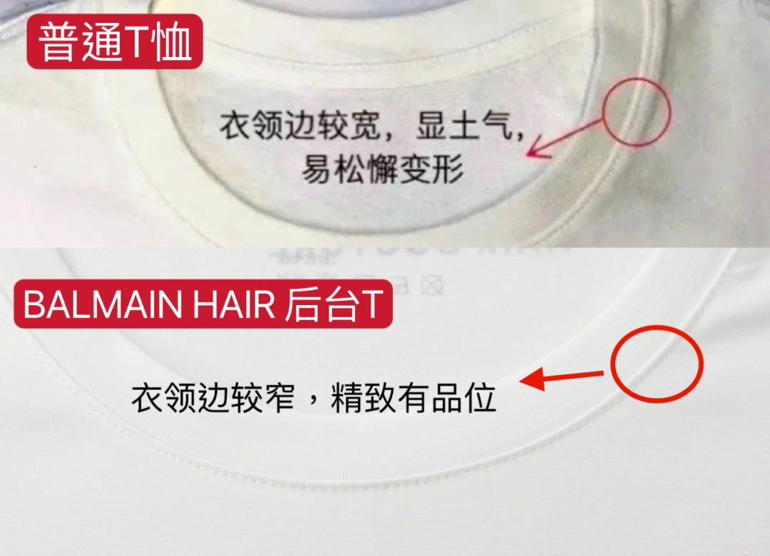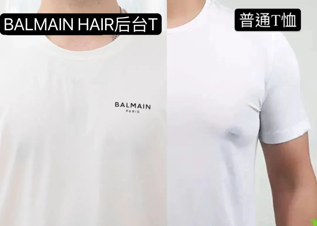 普通纯棉T(左)能看到表面小毛絮,BALMAINHAIR后台T(右)面料更有高级感