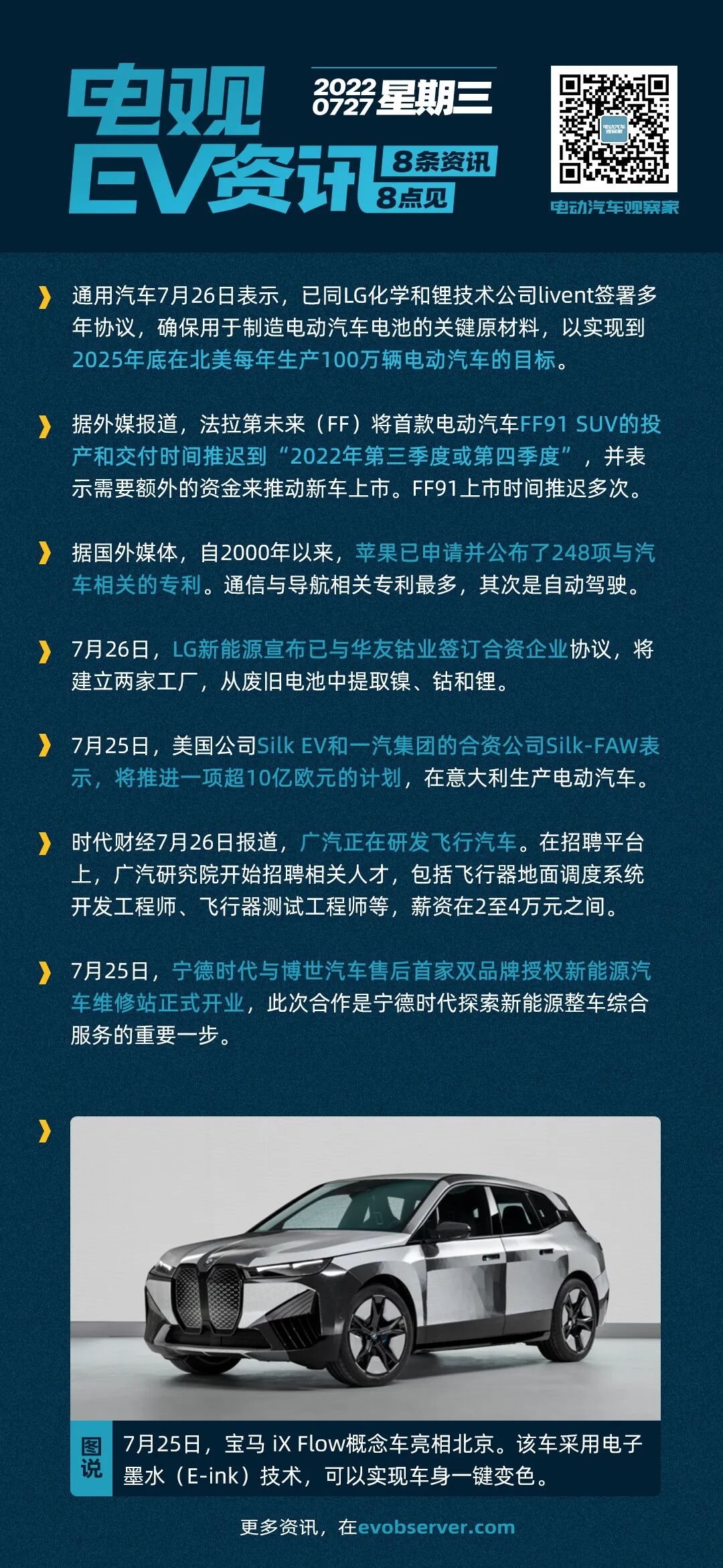 7月25日,宝马 iX Flow概念车亮相北京。该车采用电子墨水(E-ink)技术,可以实现车身一键变色。