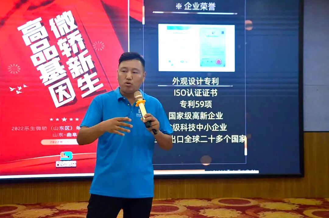随后,乐生公司营销总经理孔华伟先生,就行业现状、乐生未来品牌规划做了详细说明。孔总表示,微电轿依然处于蓝海市场,未来发展可期。据电动车协会统计,2020年低速四轮车全国销量70万辆,2021年增长30%以上,计100万台,预计2022年突破150万台!微电轿行业市场增量空间相当庞大。