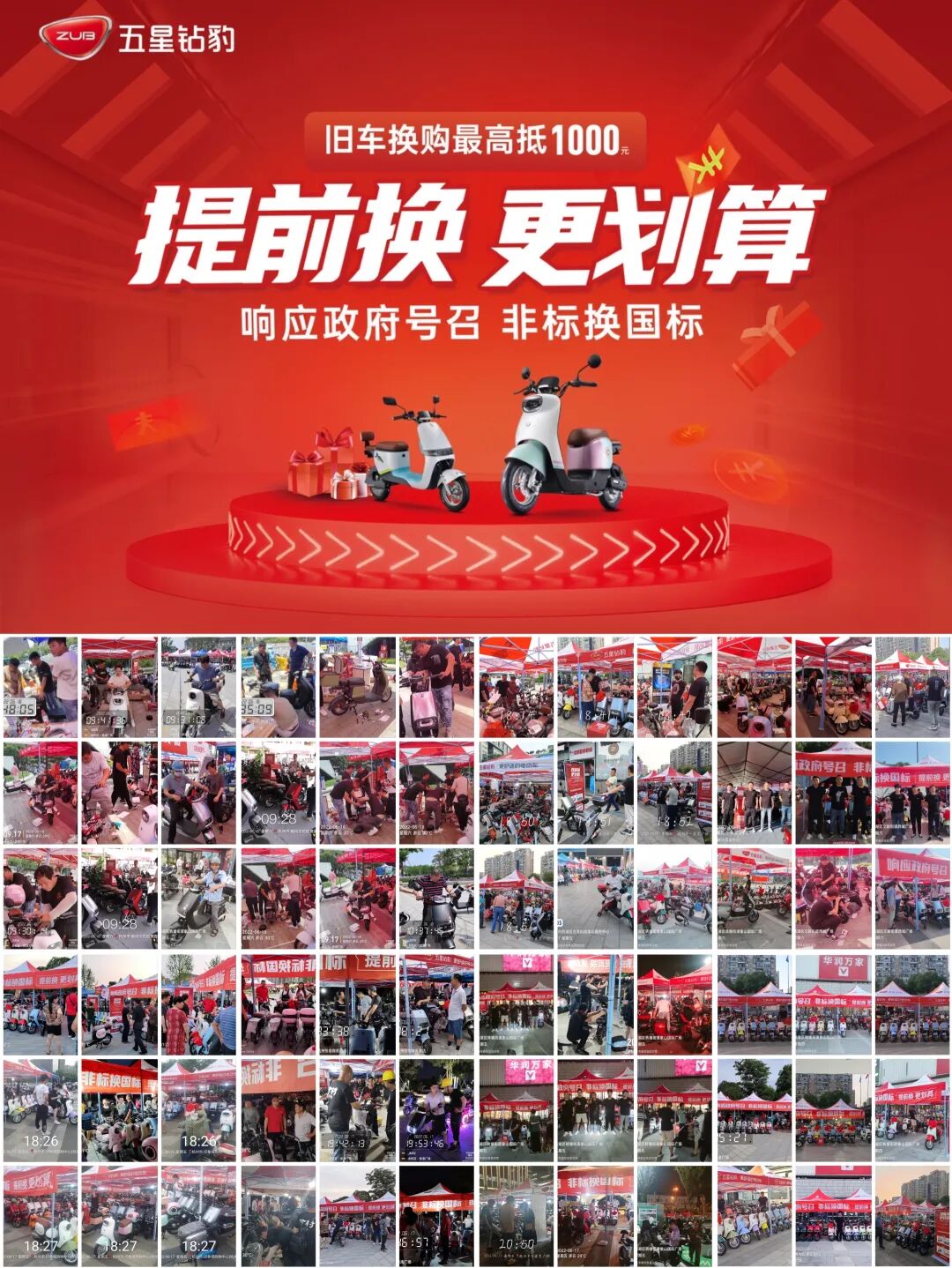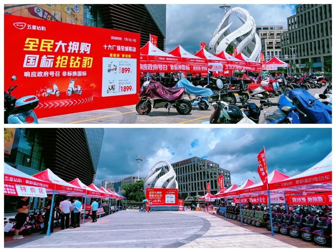 得益于五星钻豹强劲的品牌实力和消费者口碑,五星钻豹受邀参加了2022年浙江省备案非标电动自行车集中淘汰置换主场活动,并且同步举办十余场五星钻豹杭州大型广场换购活动,以实际行动积极响应政府号召,率先向千万辆级换购市场发起冲击,赢得先发优势。
