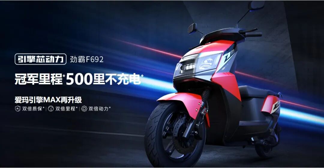 *【双倍里程】是指在引擎 MAX 百公里续航基础上升级,搭载引擎芯动力系统,经过实际路测与 引擎 max 系列车型相比 里程增加约一倍;(仅限于劲霸F692、爱玛壹号A500车型)