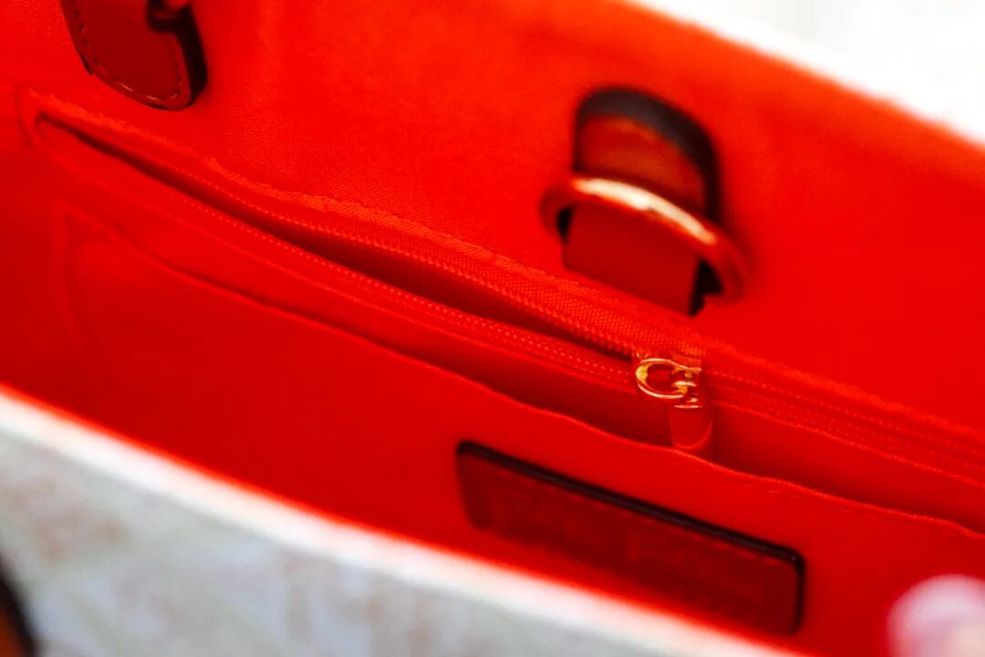 虽然价格大跳水,但设计和用料依然保持着大品牌的水准。设计整体遵循「以简洁百搭为主调,再加一点小心机」的大方针。清爽的白色饰以浅浅的橙色圣托里尼印花和品牌标志,看起来大气舒缓。加之十分轻柔的用色,还能实现一种轻盈感和呼吸感,为炎热的夏季带去丝丝清凉感,可比很多深色包要愉悦舒爽得多!