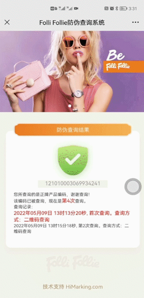 这个验证方式,也是Folli Follie官方公众号列明的防伪办法,童叟无欺!