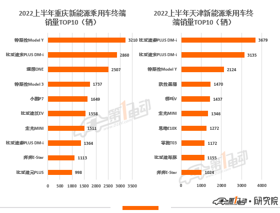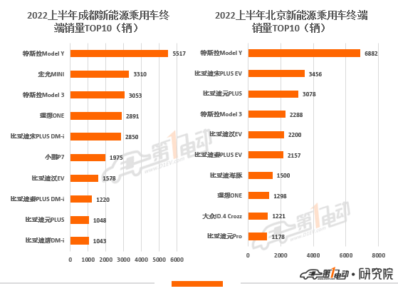 综上所述,特斯拉Model Y在深圳、上海、广州、深圳、成都、北京和重庆最畅销,而宏光MINI在郑州最受欢迎,小鹏P7深受佛山市民喜爱,天津消费者最喜爱的车型则是秦PLUS DM-i。一线新一线特斯拉Model Y夺冠 宏光MINIEV横扫二线及以下城市TOP10城市畅销榜,并未能反应上半年新能源汽车终端销量的全貌。要想快速看清全国市场的销量分布结构,还要看分级城市畅销榜。一线城市(北上广深)上半年终端销量460,334辆,特斯拉Model Y是最受欢迎车型,紧随其后的是比亚迪宋PLUS DM-i、宏光MINI、特斯拉Model 3和理想ONE。新一线城市(苏杭汉成渝等15城)终端销量29,377辆,最受欢迎的TOP5车型中,特斯拉Model Y依然是冠军,比亚迪车型占据三款。从二线城市开始,一直到三、四、五线城市,放眼望去,都是宏光MINIEV的天下。在它的带领下,QQ冰淇淋、奔奔E-Star、奇瑞小蚂蚁等A00级军团,纷纷杀进销量榜前五名,而从去年5月开始比亚迪秦PLUS DM-i开始抢占A00级军团的市场,比亚迪宋PLUS DM-i也从去年9月开始蚕食这一部分市场。今年上半年,一、二线城市中,比亚迪和特斯拉是真正的“王者”,三线及以下城市的“王者”非宏光MINIEV等A00级军团莫属。值得注意的是,比亚迪宋PLUS DM-i和秦PLUS DM-i已经成功抢占了A00级军团市场份额。![]()