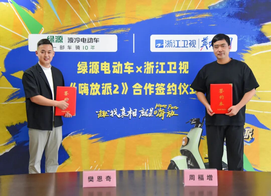 “趣”找真相,就是嗨放!8月1日,绿源电动车x浙江卫视《嗨放派2》合作签约仪式成功举办。绿源集团品牌部总监樊恩奇,浙江卫视广告部主任周福增出席了本次签约仪式,携手开启“嗨放”时刻!共同探索更贴近用户的场景,更受年轻群体喜爱的方式展现品牌魅力,推动绿源品牌年轻化、再出圈!