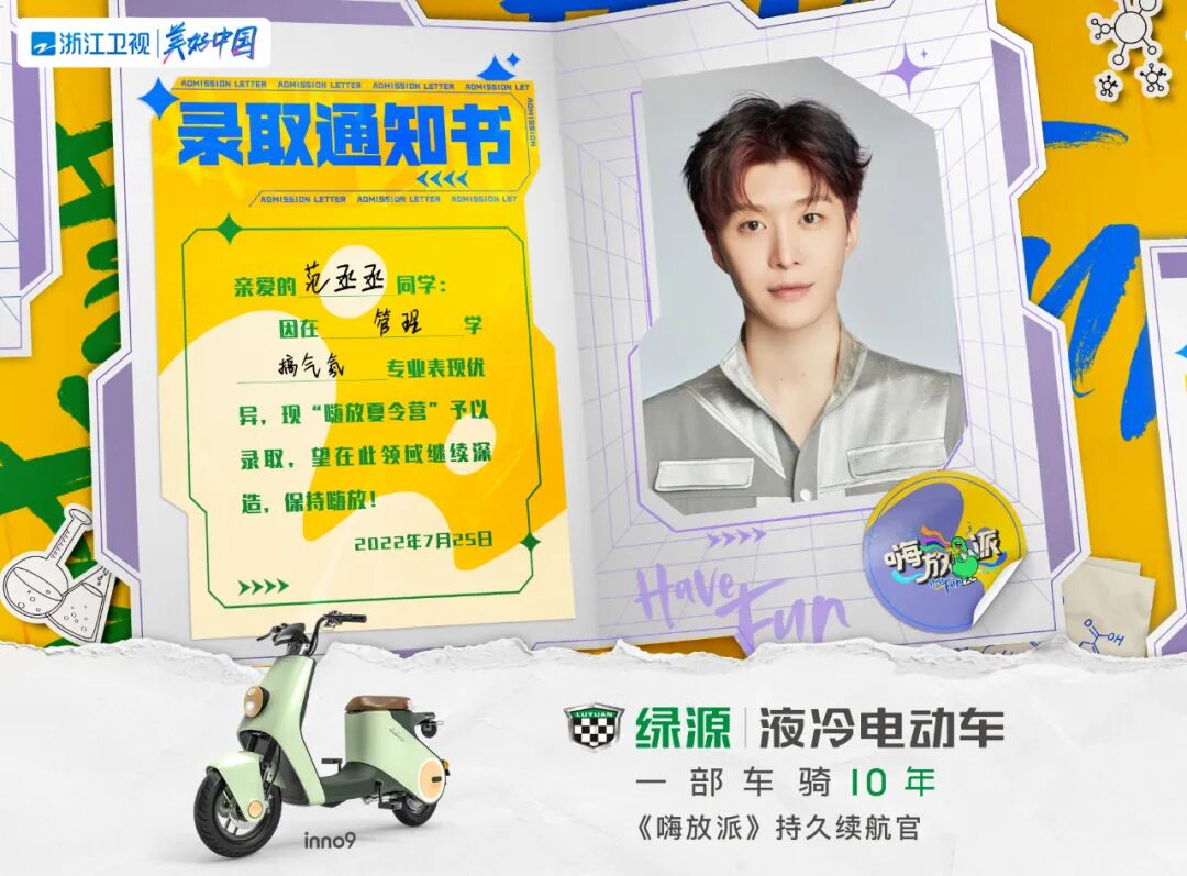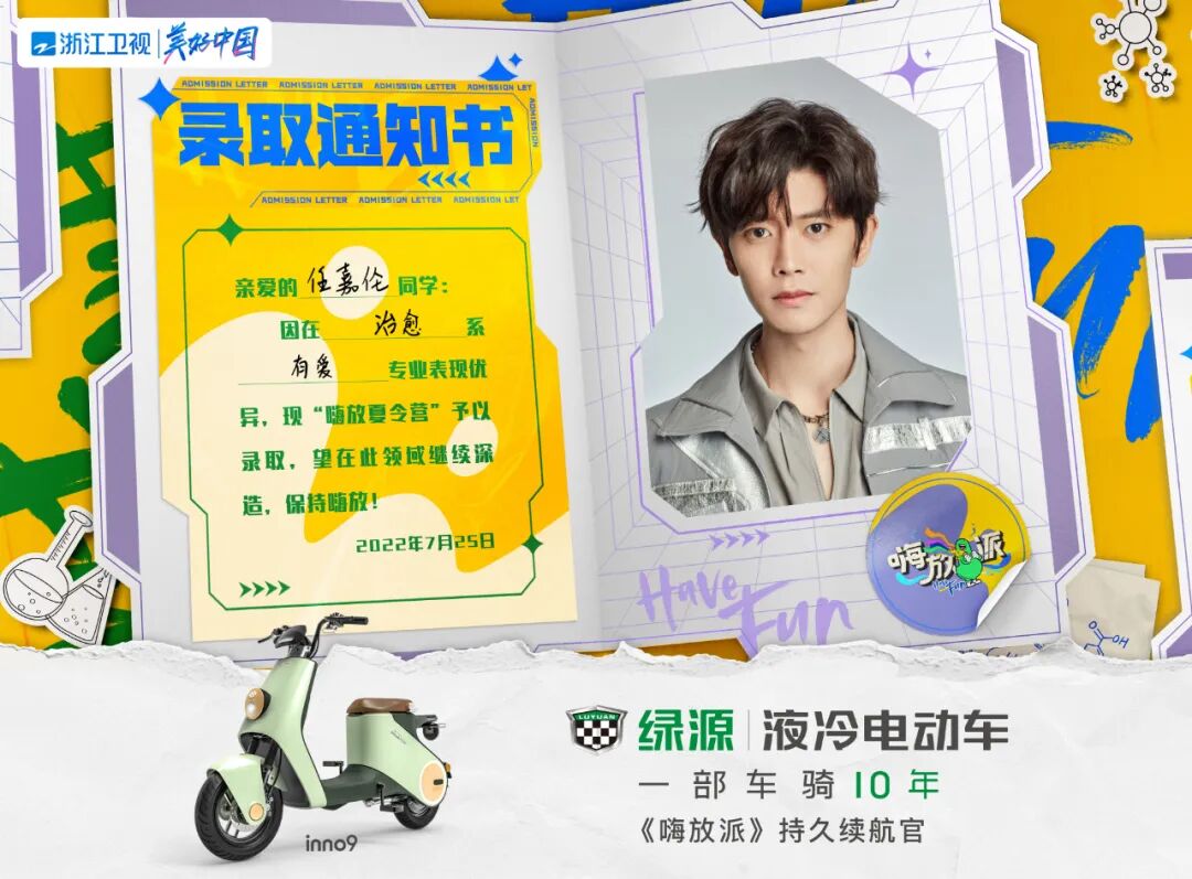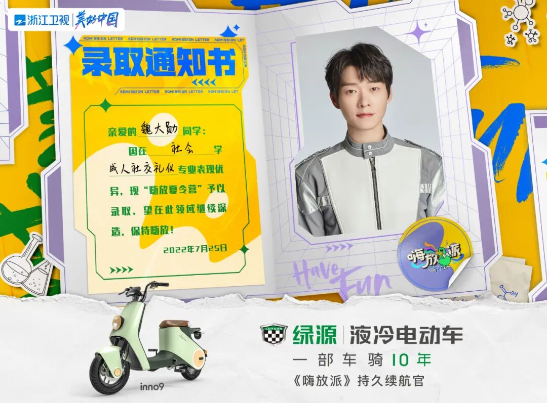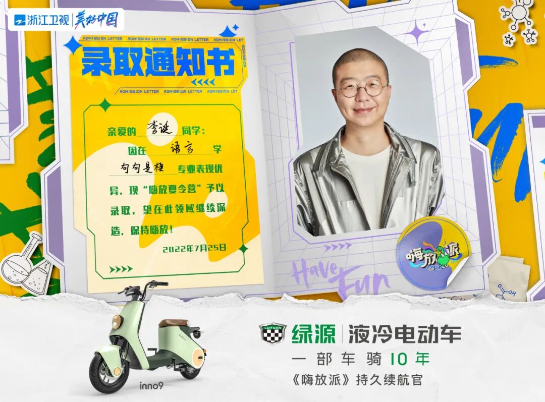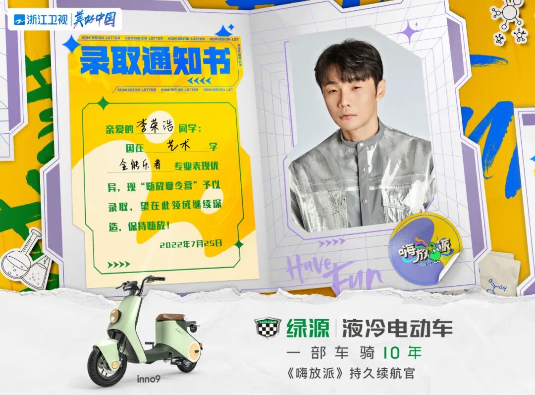 期待绿源电动车与浙江卫视《嗨放派》碰撞出精彩的火花,一骑探索电动车智能科技带来的奇趣力量吧!重要的事再说一遍:8月6日(本周六)晚20:30浙江卫视《嗨放派》首播,我们不见不散。
