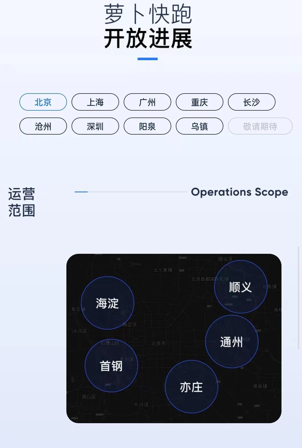,人类现阶段掌握的自动驾驶技术,完全可以实现L4级别的自动驾驶。只是由于技术稳定性、法规政策要求、用户接受度等等因素的制约,Robotaxi才迟迟无法大规模进入我们的日常生活。毕竟人开车撞了人,正常的流程是先定责,然后按照比例赔付,要么保险赔要么车主赔;但Robotaxi撞了人,在责任划分之后到底怎么赔、赔多少,这在全世界都是大难题。所以截止到目前,无论国内还是国外,Robotaxi都是要在后台配备安全员的,在关键时刻要接管车辆。因此如果哪位好奇的朋友想去体验一把Robotaxi的服务,也无须担心安全问题。就比如国内的“萝卜快跑”,就在不少一二线甚至是旅游城市提供运营,在北京甚至有亦庄、通州、顺义、海淀、首钢五个区域可选。在去年2021年11月25日,“萝卜快跑”就收获了国内第一个付费订单:在美国也是如此。通用和福特已经正式向监管机构提出申请,要求允许自家可以部署没有方向盘和踏板等人类控制装置的自动驾驶汽车。而拥有Zoox和没有方向盘的自动驾驶汽车——VH6的亚马逊,也不甘示弱地入局Robotaxi。