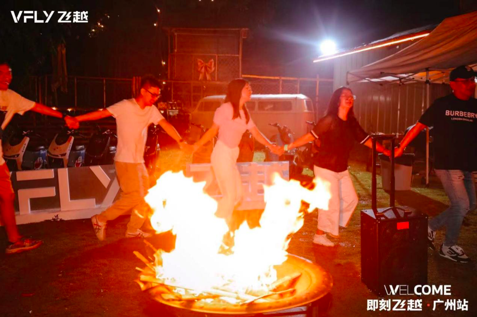 据现场车友的阐述:电动两轮车已经不仅仅作为一项出行工具,更是自己的生活方式的体现。所以我们会将自己喜欢的元素体现在车身上,来彰显自己的个性。并且通过VFLY即刻飞越这样的线下活动,可以认识很多有想法的车友,这会给我们一种组织的归属感。活动一直持续到晚上,在夏日的晚风中,大家围绕篝火玩的酣畅淋漓,引用飞越车主俱乐部粉丝们的话:VFLY飞越的用户正在快速增长,这个群体会越来越大。就像你见到的这团火一样,我们也将以100%的热情投入,不负骑行热爱!