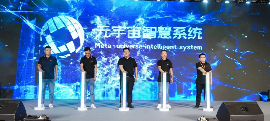 作为本次大会的又一压轴大戏,山东特鲁夫新能源车业有限公司总经理潘天成、营销中心总监魏庆林、研发中心总监杨红光、制造中心总监杜建康以及供应商代表上台,共同发布融合全球智慧的特鲁夫“元宇宙智慧系统”。