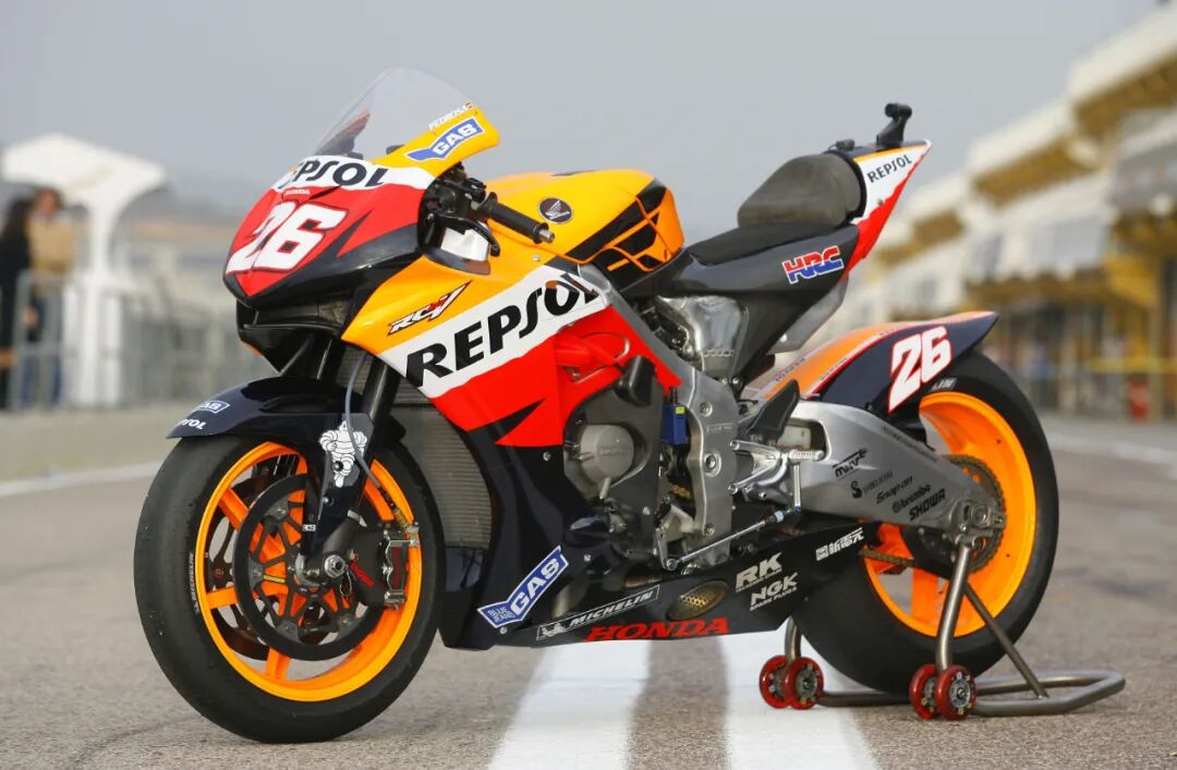 由于MotoGP比赛规则的修改,2012年Honda推出新一代MotoGP赛车RC213V,目前Honda征战的战马就是RC213V,其中RC代表赛车,213表示21世纪第3代厂家赛车,V表示V型发动机。自2012年RC213V参战以来,在十年戎马生涯中,帮助骑手夺取了6个世界冠军,超过了半壁江山,实力可见非同凡响!