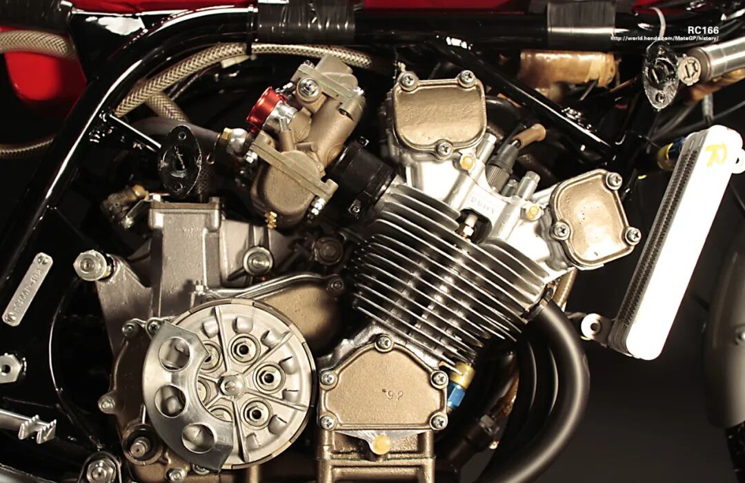 在1966年GP250组,Honda推出了前所未见的RC166赛车:虽然汽缸排量只有区区249.42mL,但是竟然采用了并列六缸的汽缸结构,这样每颗汽缸只与拳头大小相当!但是你可千万别小觑这些“小拳头”,因为Honda采取了强化转速的设计思路,转速红线高达18000r/min,最大功率突破了44kW!为了有效发挥偏激的高转速大功率作用,Honda为其匹配了7速传动系统,支持RC166疯狂飞驰,极速可达240km/h!