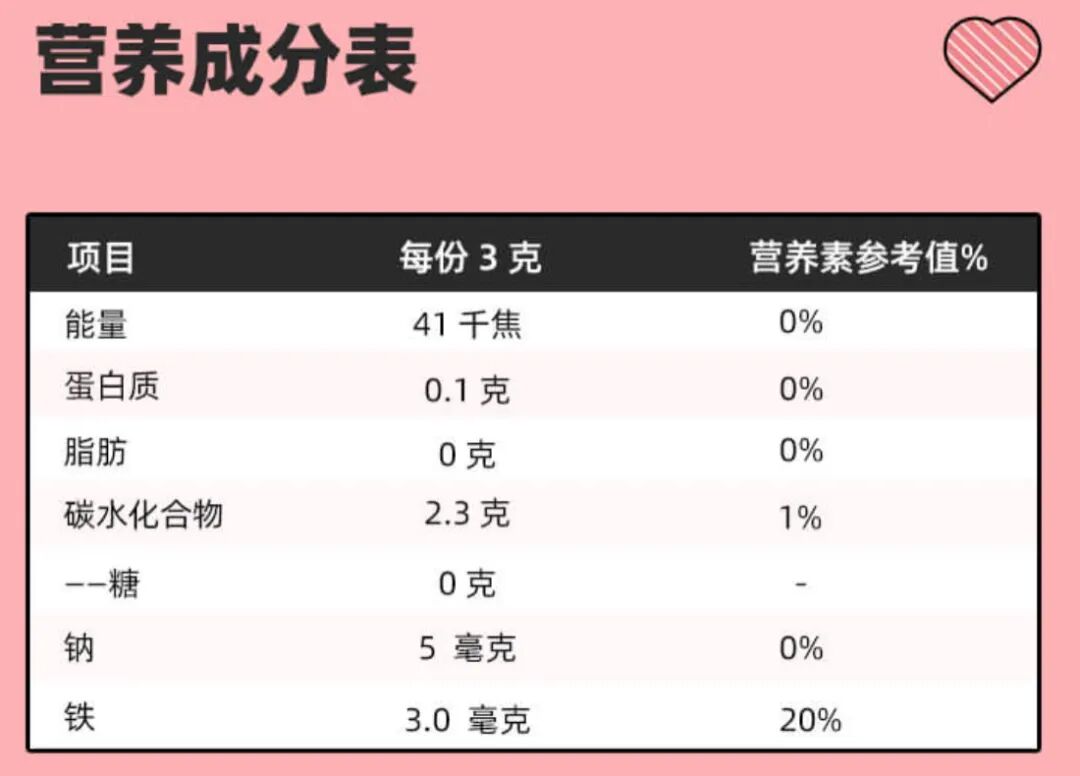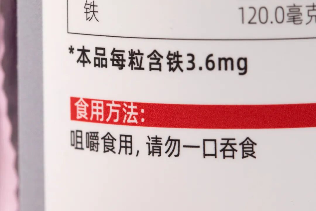 每颗就有3.6mg的含铁量,并且另加入了丰富的VC,来促进铁的吸收。