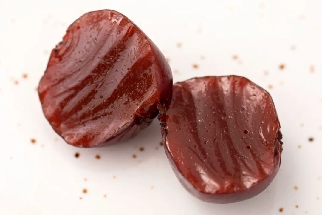反倒弥漫着清新的蓝莓香、红枣香,入口酸酸甜甜,还Q弹十足,特别有小时候吃QQ糖的快乐!