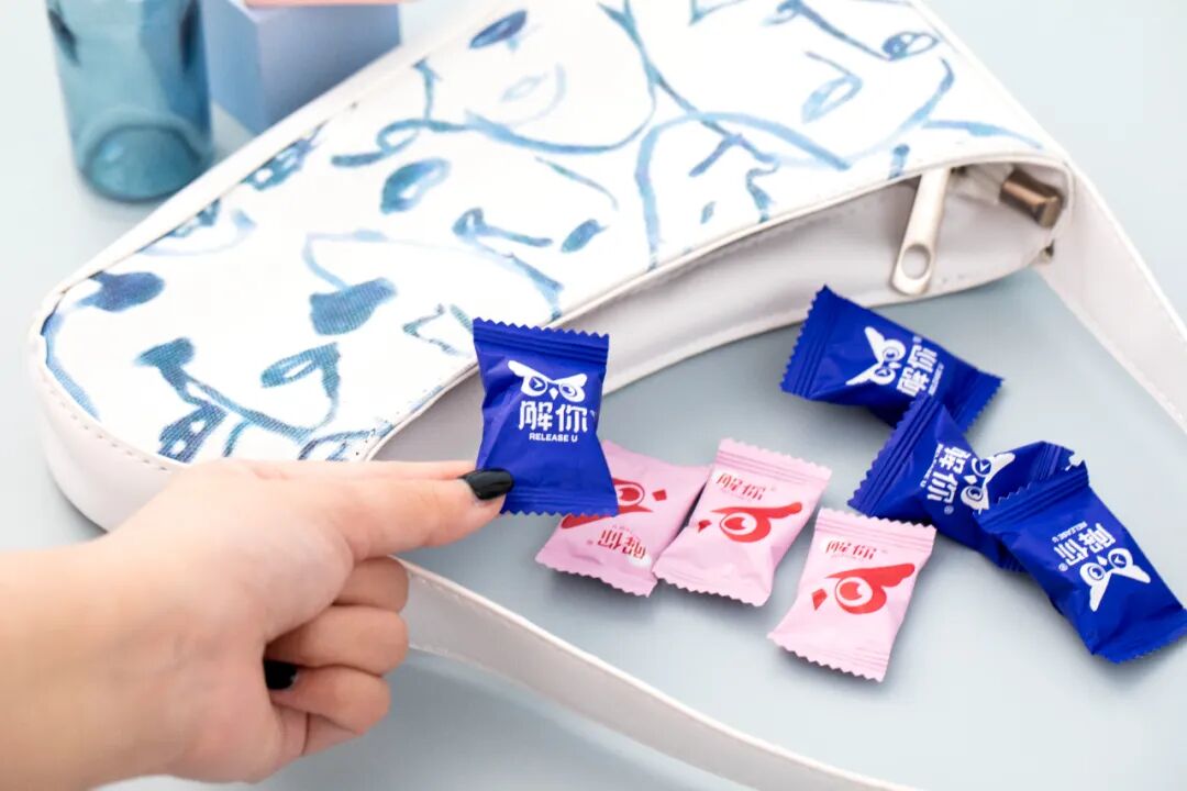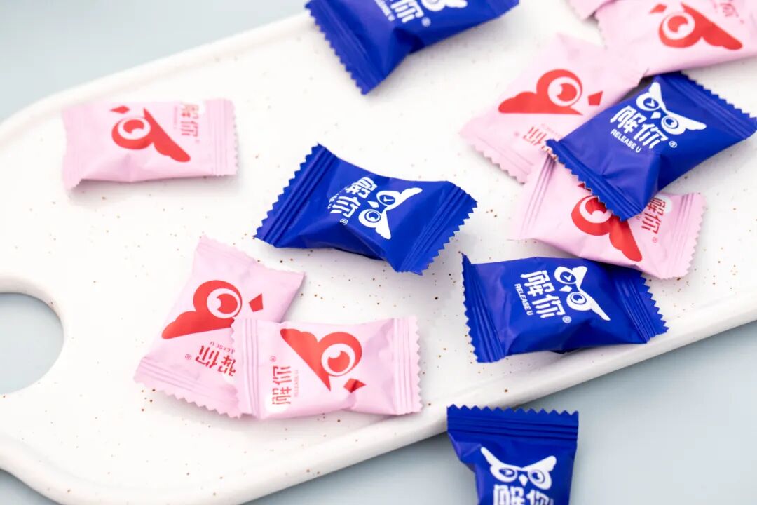 加上跟很多软糖都是全部堆在瓶子里不同,「解你」每一粒软糖都是镀铝膜的独立包装。