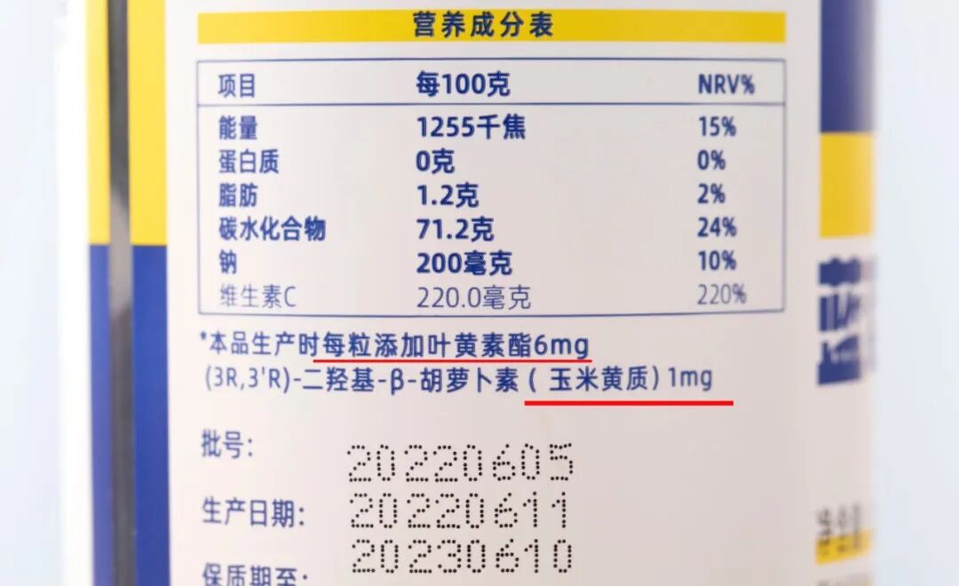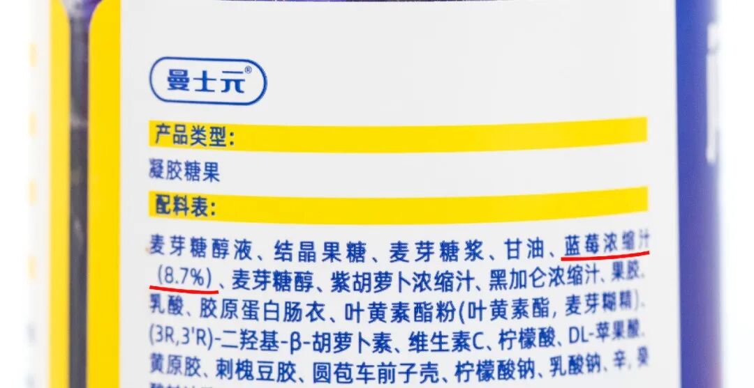 以蓝莓叶黄素酯软糖为例,一颗软糖就含有6mg叶黄素酯+1mg玉米黄质+8.8mg维生素C。