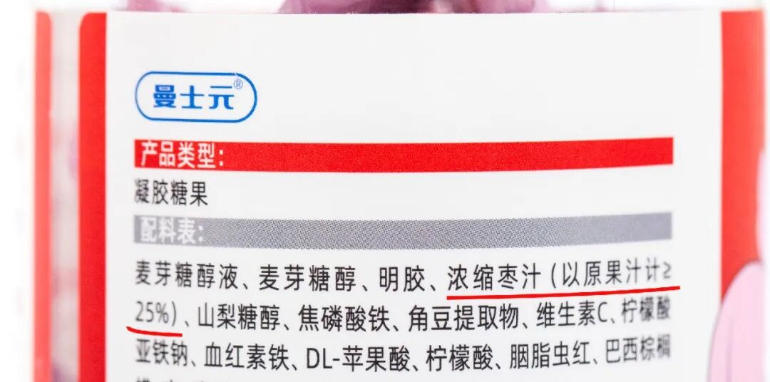 我特意对比了下之前吃惯的一款补铁软糖,每颗大概只有3mg的含铁量,也没有额外添加别的营养元素。
