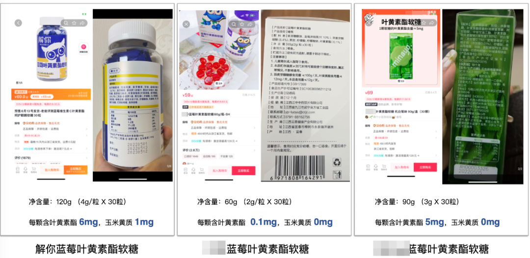 市面上同类型的叶黄素酯软糖不少,但普遍加的核心成分只有3~4mg。