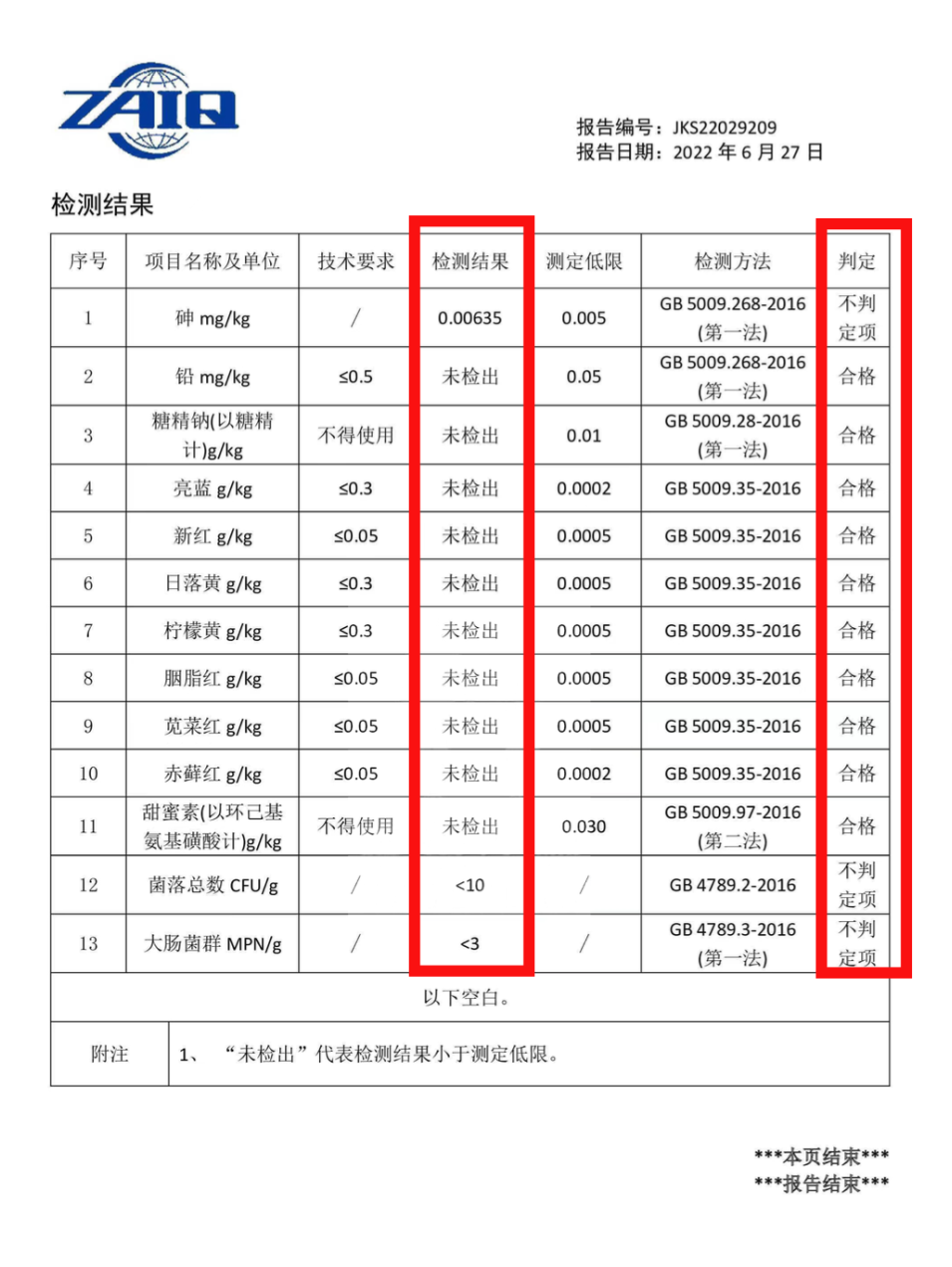 「解你」还额外加码做了重金属、色素、微生物检测,结果均为未检出。