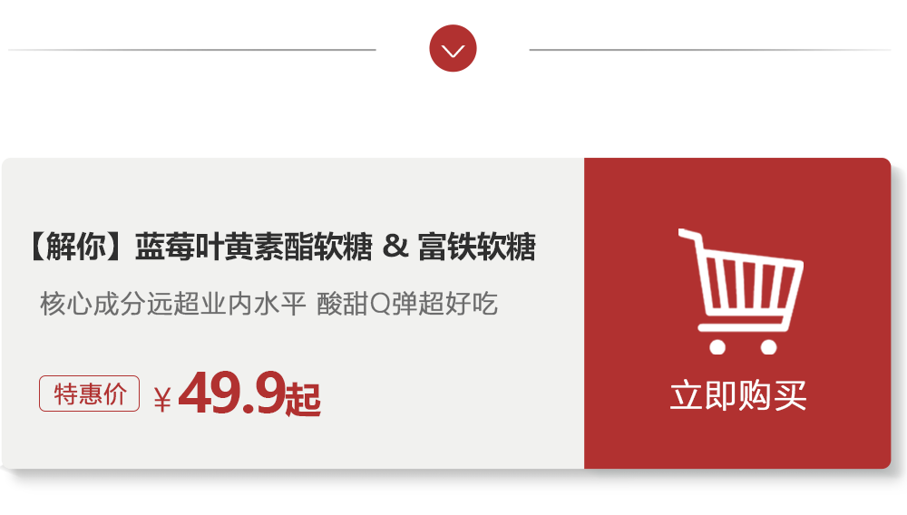 日常每瓶119.9元的蓝莓叶黄素酯软糖(30粒/瓶)和富铁软糖(30粒/瓶),今天一瓶仅需49.9元,买两瓶更低至95元。