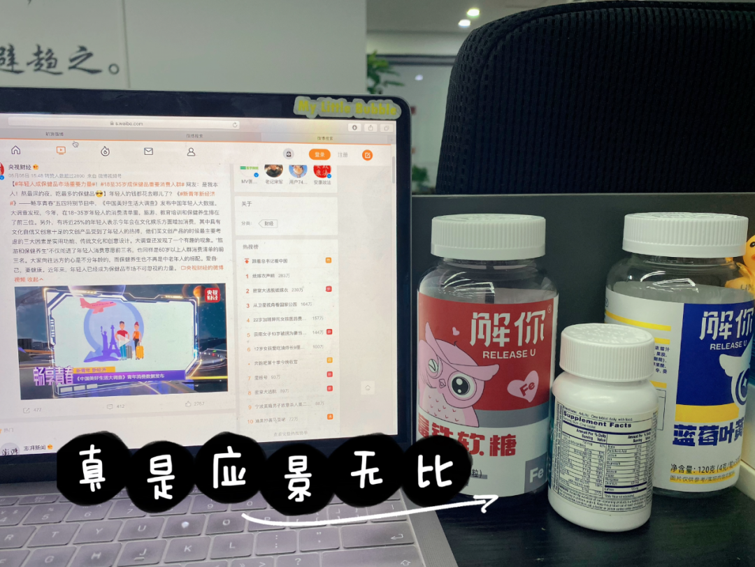 突击了一下几个同事的工位,无一例外都把保健品摆在了显眼的位置。