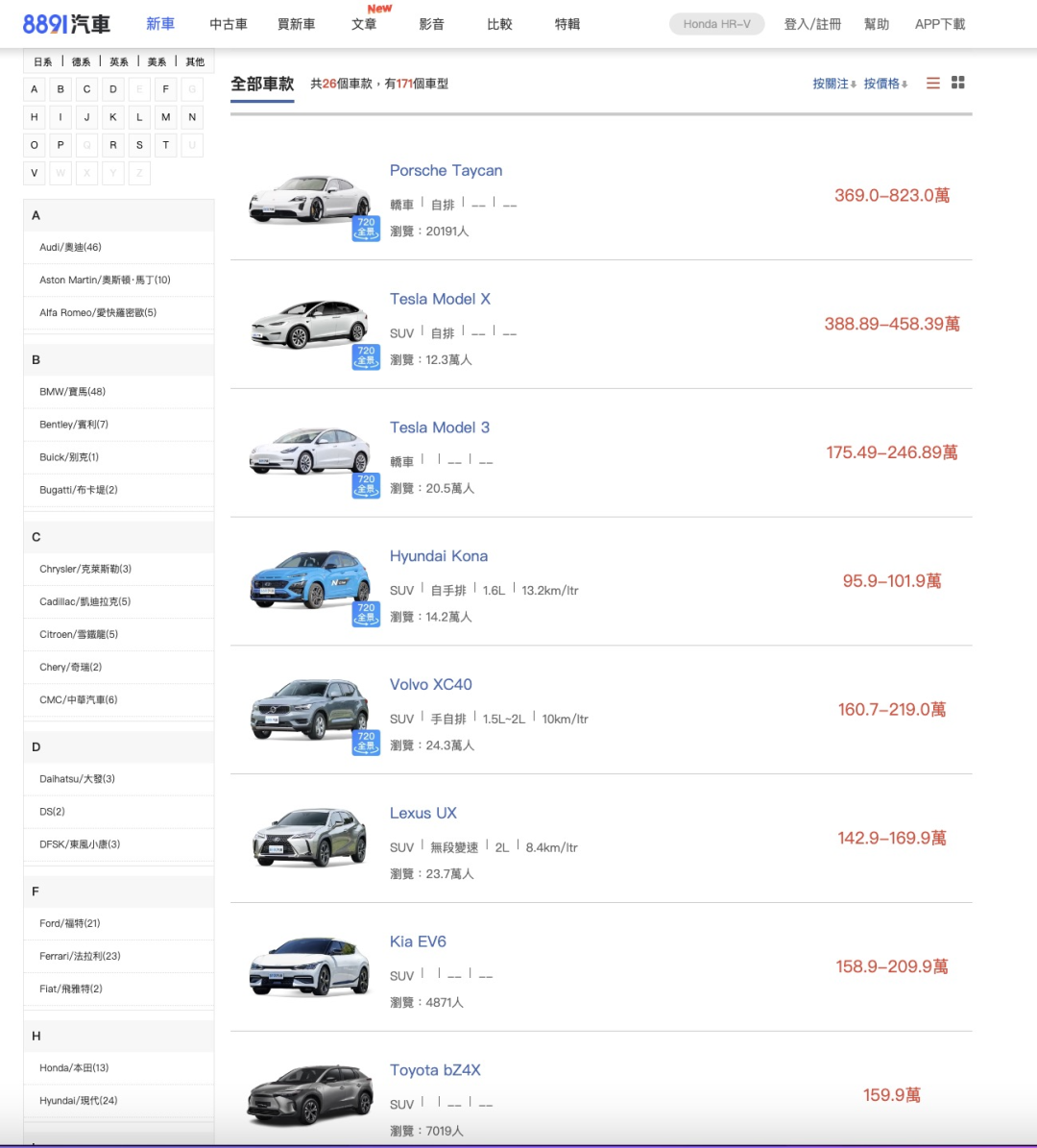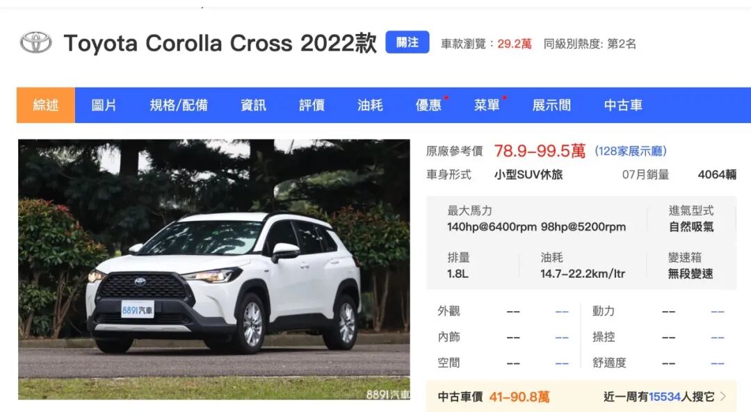 台湾省新车市场一共20多款车型