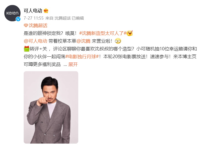 不仅在全国院线进行疯狂刷屏,可人电动还创新营销玩法,以线上线下的活动联动实现了破圈层式的扩散,加快向私域流量转化。在微博上,可人电动发起的#沈腾新造型太可人了#话题曝光度已达1.7亿次,俨然已经刮起一场现象级的话题风暴,这不仅进一步加深品牌印象,还将品牌代言人沈腾与可人电动进行深度捆绑链接,强化在消费者心中的印象,将明星效应转化为品牌价值。与此同时,可人电动还发起线下活动,号召粉丝在线下门店、院线进行合影传播,进一步拉近品牌和用户之间的距离,极大地提升了品牌的曝光度和影响力,形成属于消费者和可人电动之间的直接情感印记。相比于一味强调“灌输”的方式,可人电动这波操作具有“潜移默化地传递信息、影响心智”的优势。线下+线上的全媒体传播矩阵,既可以抓住电影热播的流量红利,实现广告的有效触达,又可以通过线上线下的互动实现品牌精准传播,堪称是品牌曝光和构建私域流量的经典案例。毫无疑问的是,旺季到来之际,可人电动以亿万顶级流量全面曝光赚足眼球,一举成为当下最受瞩目的焦点品牌。《独行月球》+沈腾+可人电动,三方能量碰撞所带来的的影响力超出想象,为可人电动带来一场史无前例的风暴级曝光和赋能,品牌声量不断暴涨的同时,也带动了可人电动终端门店销量的提升。携手沈腾,《独行月球》,可人电动惊艳“出圈”,必将把亿万流量转化为实际销量,提升经销商的核心竞争力,提振终端业绩增长。
