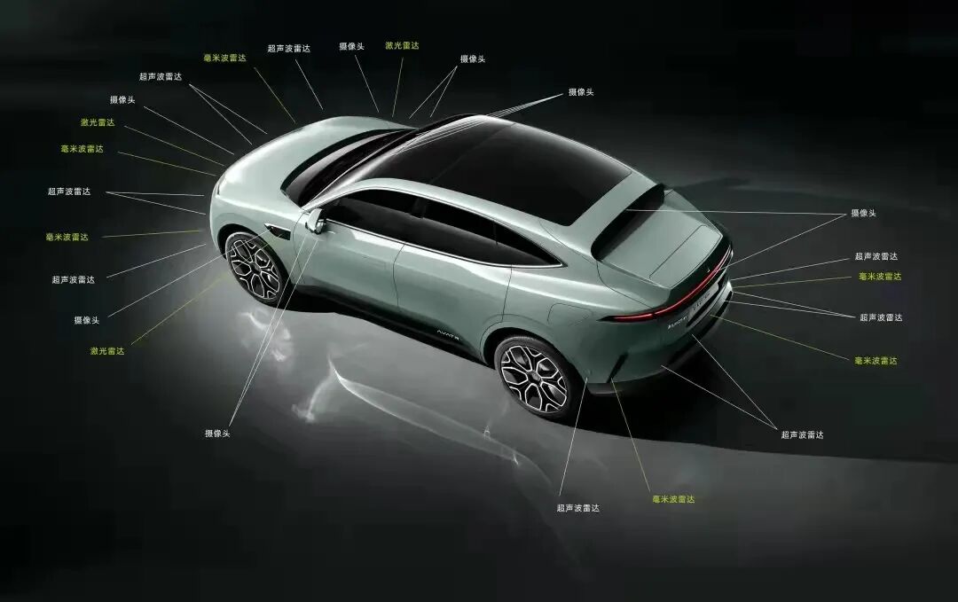 阿维塔11配备超感系统及超算平台,算力高达400 TOPS。华为虽然没有参股阿维塔,但作为战略合作伙伴,华为深度参与产品的智能驾驶、智能座舱、应用系统的开发,实现阿维塔品牌共创,打造了AVATRANS智能领航系统。新车搭载面向城区的智能驾驶辅助系统,具有34 个传感器,包括3颗半固态激光雷达、6颗毫米波雷达、13颗高清摄像头、12颗超声波雷达,具备高速看得远、路口看得宽、复杂场景看得准的优势。高速场景下可实现自动跟车启停、自动超车、主动避让、自动上下匝道等功能;在城区内能够实现无保护左转、识别红绿灯、行人礼让等高阶智能驾驶辅助功能;在停车场,可以自动识别停车位、自主泊车、绕行障碍物,当然后续还会有更多功能通过OTA来实现。![]()