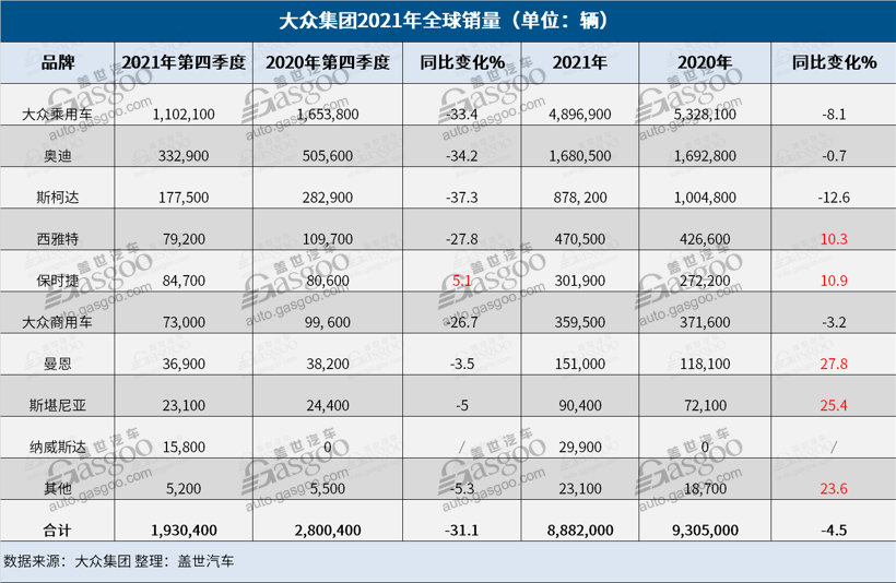 近日,我们从海外媒体获悉,标致将在2023年7月份前推出纯电动版308车型――标致e-308。新车将拥有400公里的续航里程,并仅会推出前轮驱动版本。1月12日,大众集团公布了2021年在全球的销量数据。正如此前预测的,尽管客户需求旺盛,订单充足,但因全球半导体供不应求,大众集团2021年全球销量较2020年减少4.5%至888.2万辆。