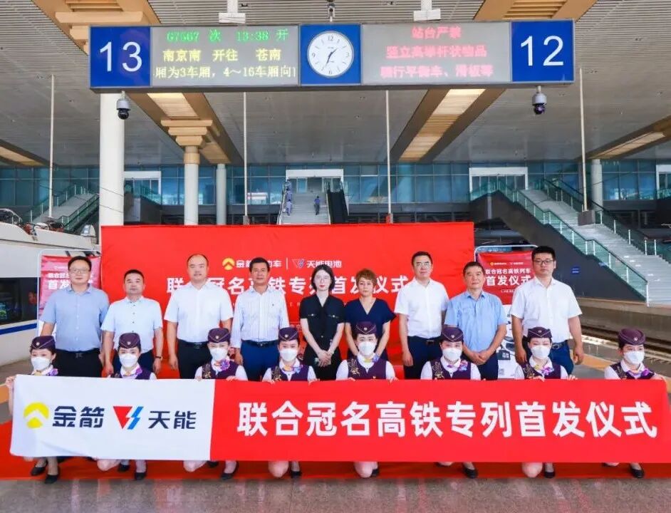 2022年8月6日,“天能超能量金箭新品质”高铁冠名列车首发仪式在南京南站隆重举行。这趟承载天能和金箭共赢理想,助力行业高速发展的列车,将积聚传播之势,拉动双方品牌合作发展新引擎。受电动车新国标和“双碳”战略影响,新能源产业已进入全面市场化的拓展期,为动力电池发展带来了巨大市场机遇。天能与金箭将通过此次联合冠名高铁列车活动,依附各自领域的品牌实力,实现资源整合。![]()
