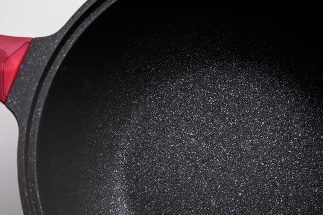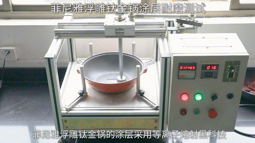 采用高压旋流熔射工艺,均匀喷射1000UM钛溶颗粒,附着于锅表面,实现钛层锅身一体化,耐磨不粘性提升97%。
