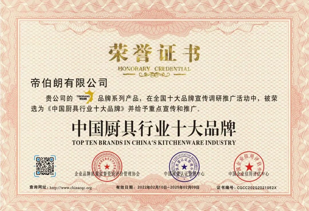 被荣选为《中国厨具行业十大品牌》,并给予重点宣传和推广。