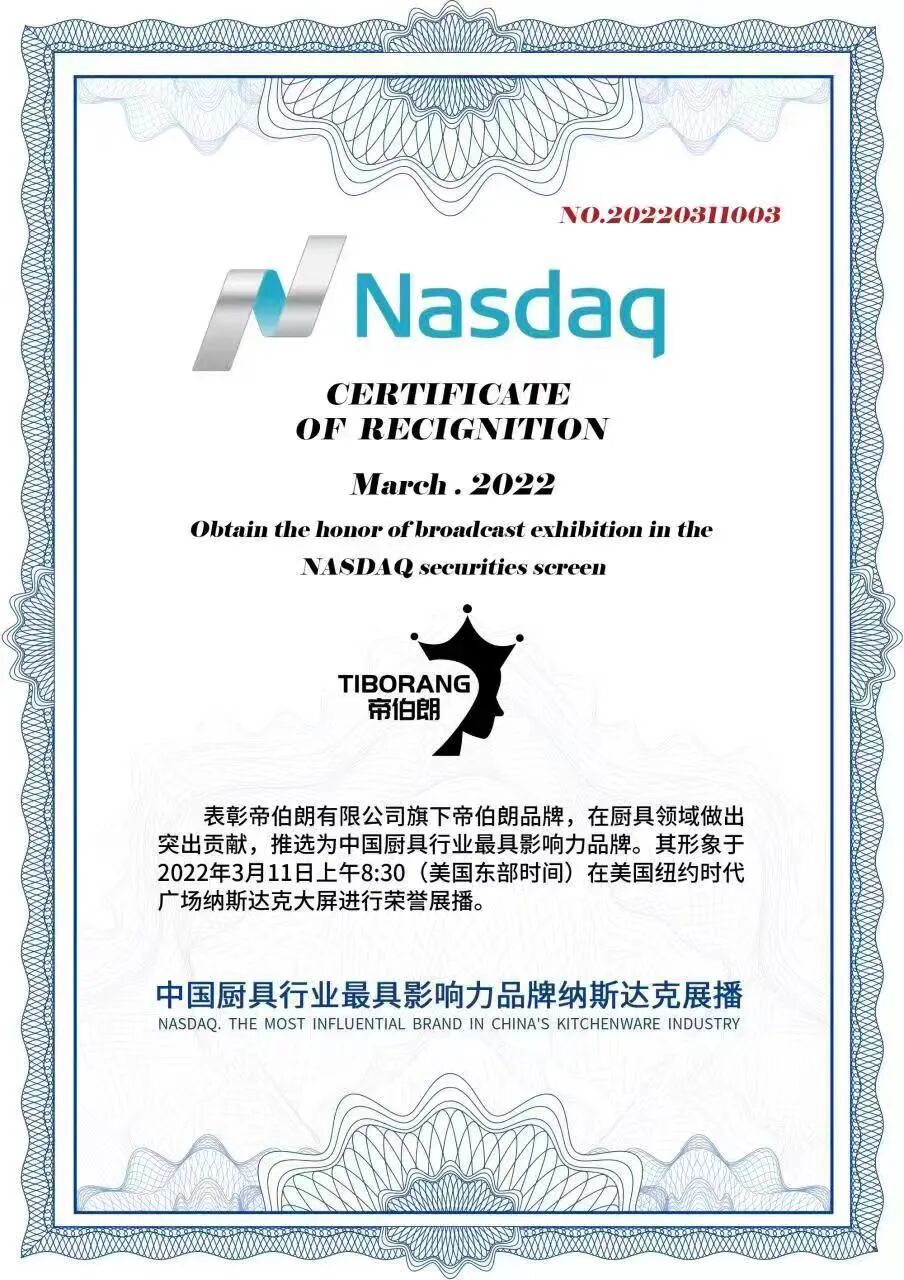 2022年3月份,推选为中国厨具行业最具影响力品牌。