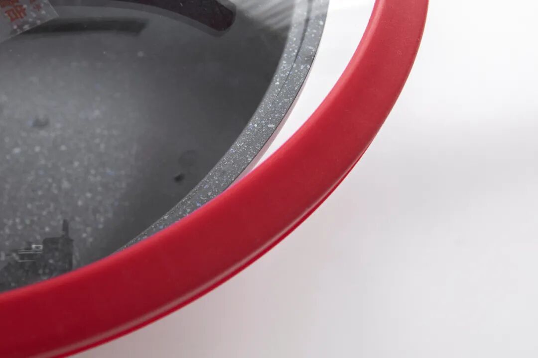 在锅盖的四周装有一圈橡胶圈,有了这个橡胶圈以后让锅的密封性更好了。