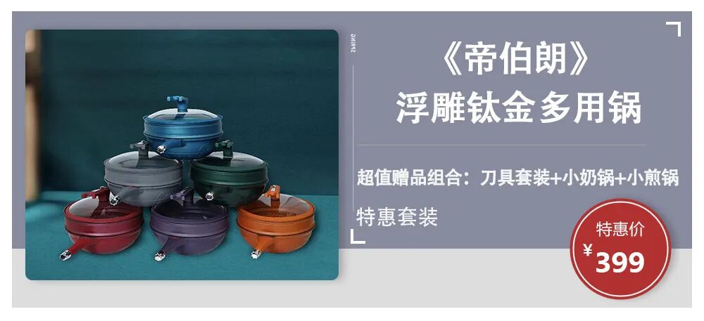 官方指导价459的炒锅,限时399元,再“白送”一堆超值:一套刀具+小奶锅+小煎锅(三种产品官方总价值797元),这样算下来4大件到手只要399元,一件平均不到100块!抢到就是赚到!