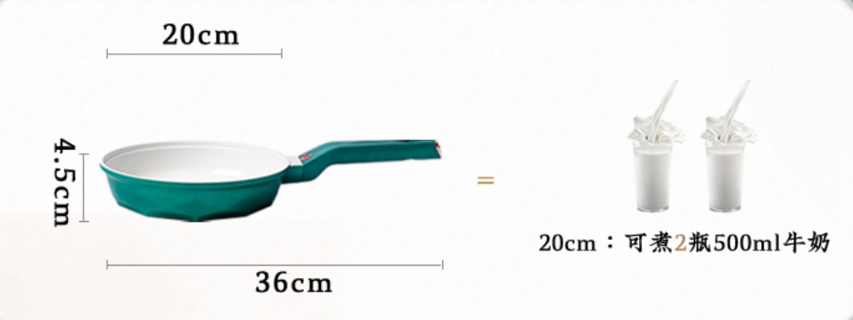 煎锅尺寸如下,可以煮2瓶500ml的牛奶