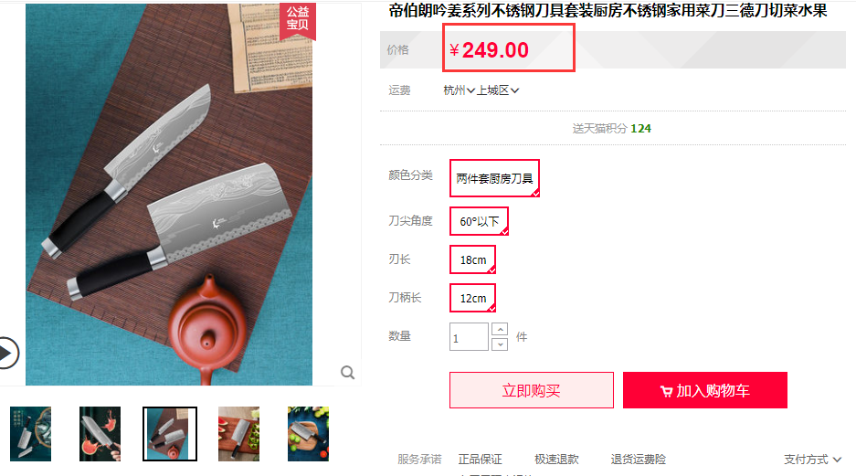 “白送”一:帝伯朗家的吟姜系列不锈钢刀具套装(两件套)官方指导价要249元。