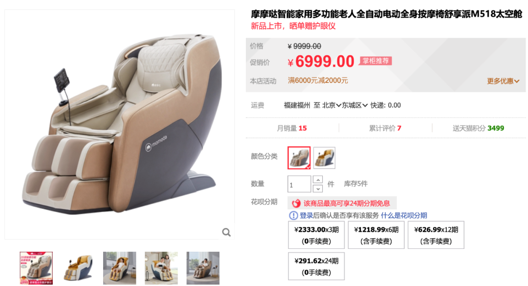 而且由于这回是再次合作、二度联手,品牌方也很阔气地自砍2000,官方旗舰店要价6999的按摩椅,现在从我们商城买,仅需2999!牌子响、性价比高,妥妥送人倍有面、自用倍爽的「送礼理想型」。![]()