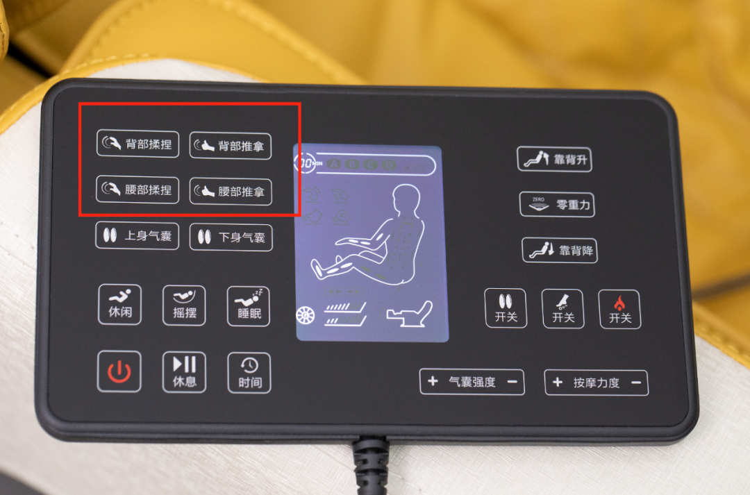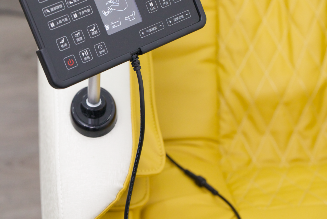 关键是,这个面板是有线的,始终连在按摩椅上,再也不怕椅到用时找不到遥控器!![]()