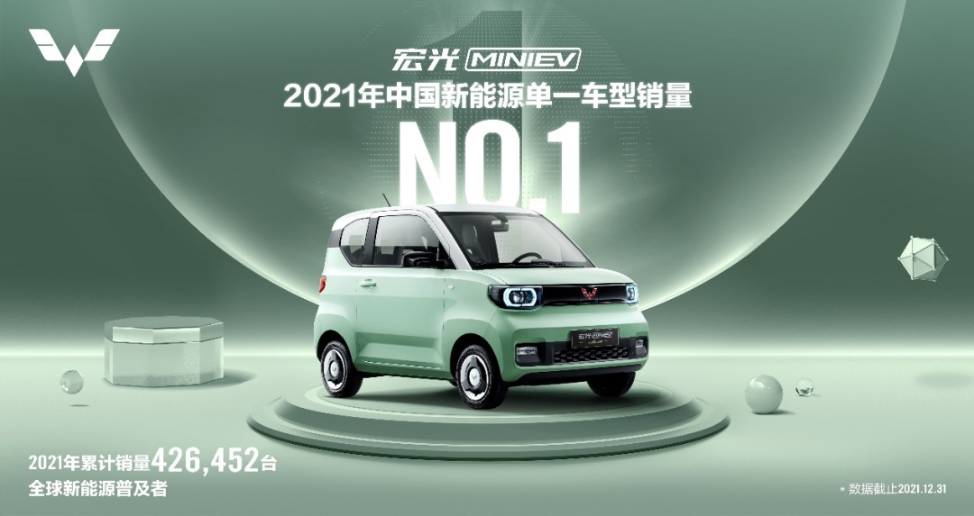 1月14日,五菱宣布宏光MINIEV销量突破55万, 2021全年销量426,452台。