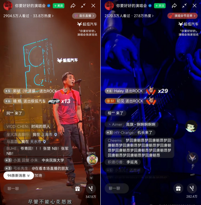 讲真,在演唱会现场直播时,极狐除了崔健那一场确实是没做什么有用的工作外,其他两场在许多营销小细节方面还是很用心的。
