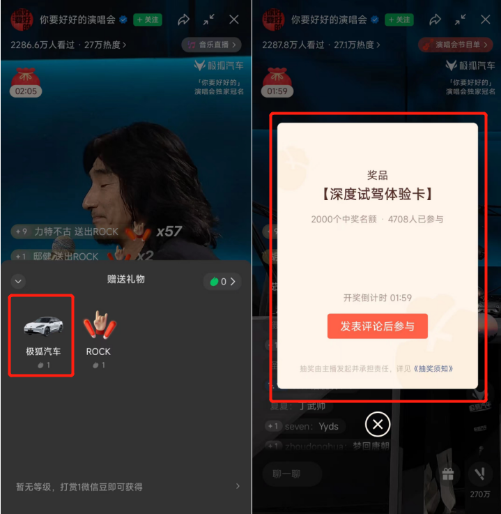 值得一提的是,假如你是极狐车主或者已经下大定还没交车的,都可以免费获得摇滚演唱会的现场票,极狐官方还会帮你把机票、酒店钱全包了。