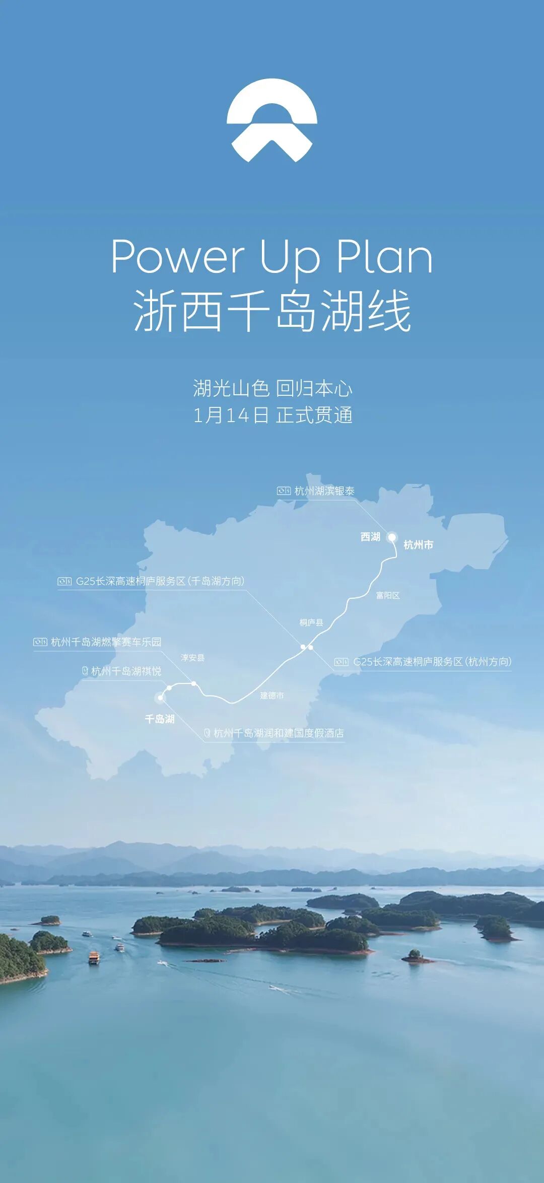 1月14日,蔚来官方消息,蔚来Power Up Plan|浙西千岛湖线正式贯通。千岛湖路线全长约180公里,沿途布局4座换电站、2座目的地充电站、10根目的地充电桩。![]()