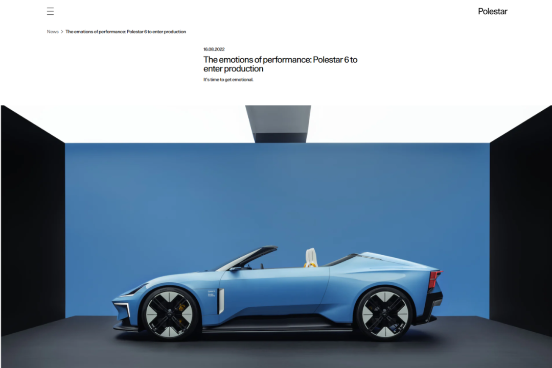 8月16日,Polestar 极星宣布,纯电敞篷概念跑车极星O将命名为极星6并投入量产,新车预计于 2026 年上市。