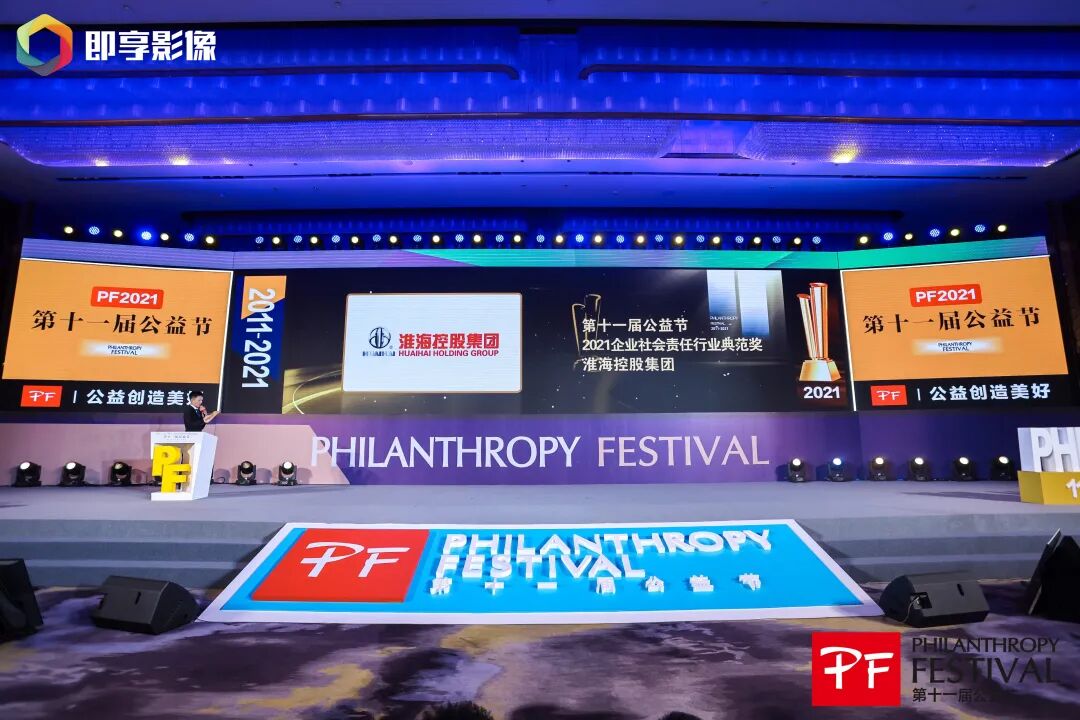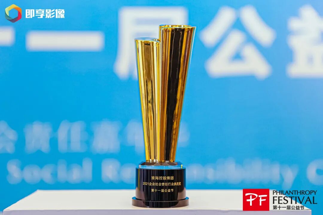 1月14日,在上海举办的第十一届中国公益节颁奖典礼上,淮海控股集团荣膺“2021企业社会责任行业典范奖”